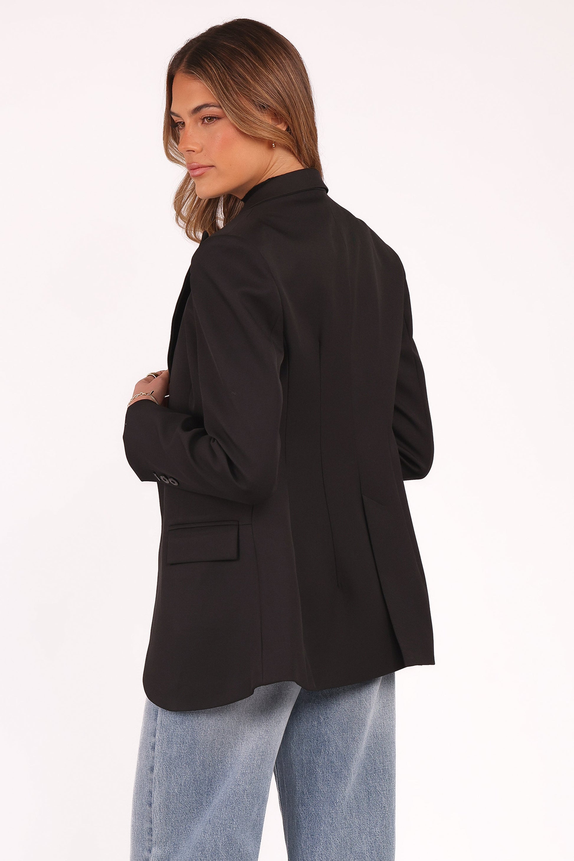 Designed with a timeless collar and sleek notch lapels, this blazer brings modern sophistication to any look. The tailored silhouette features subtle shoulder pads for structure, long sleeves with button-close cuffs, and a functional front pocket that blends practicality with style.