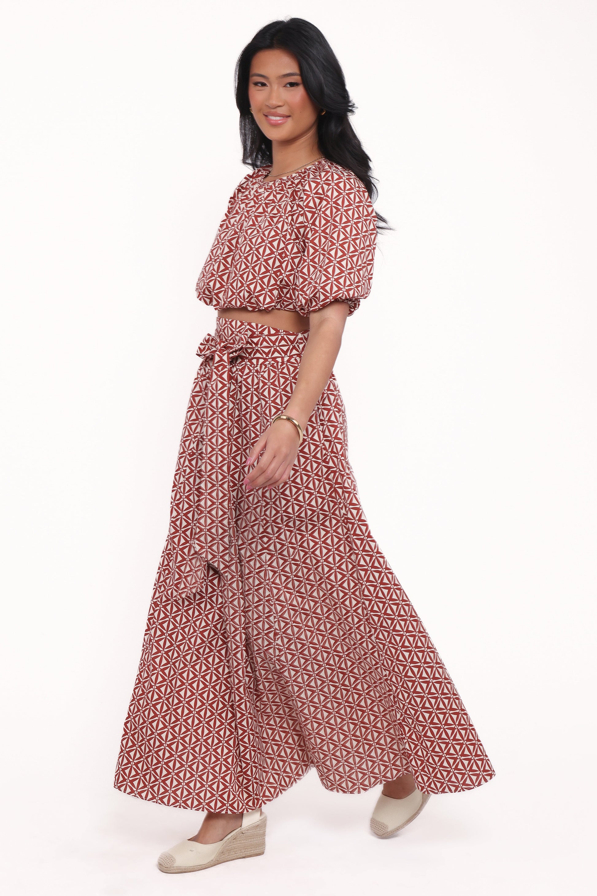 Effortlessly elevate your wardrobe with the Delilah Set, a matching top and skirt combo that's equal parts chic and versatile. Paired with a high-waisted A-line midi skirt, it boasts functional pockets (yes, pockets!) and an invisible side zip with a hook-and-eye clasp, giving you a fit that feels tailor-made.