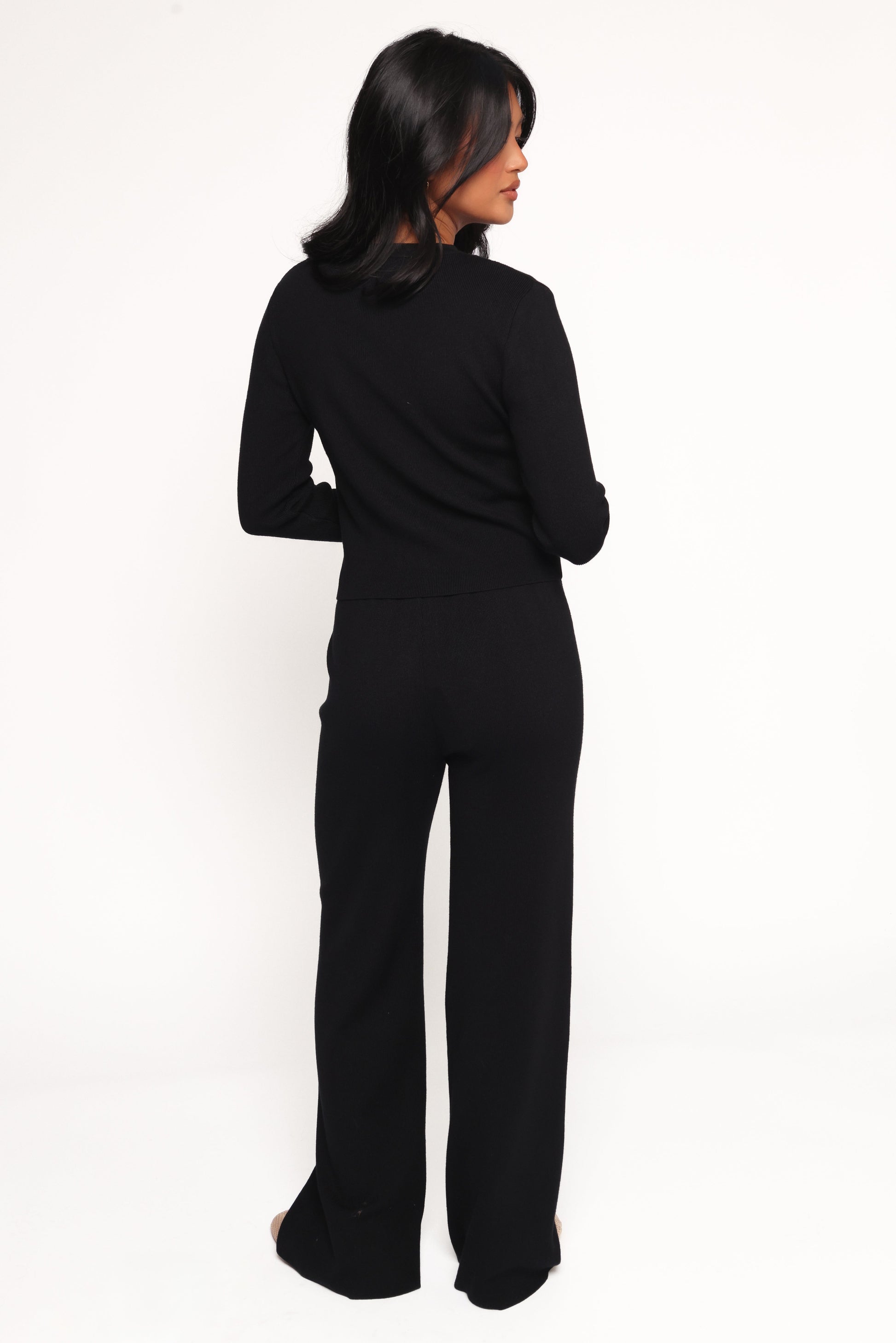 This matching knit set features a cozy cardigan with a flattering round neckline, functional buttons down the front, and long sleeves for a sleek silhouette. The high-rise pants boast a stretchy elasticised waistband and a straight-leg design that feels as good as it looks.