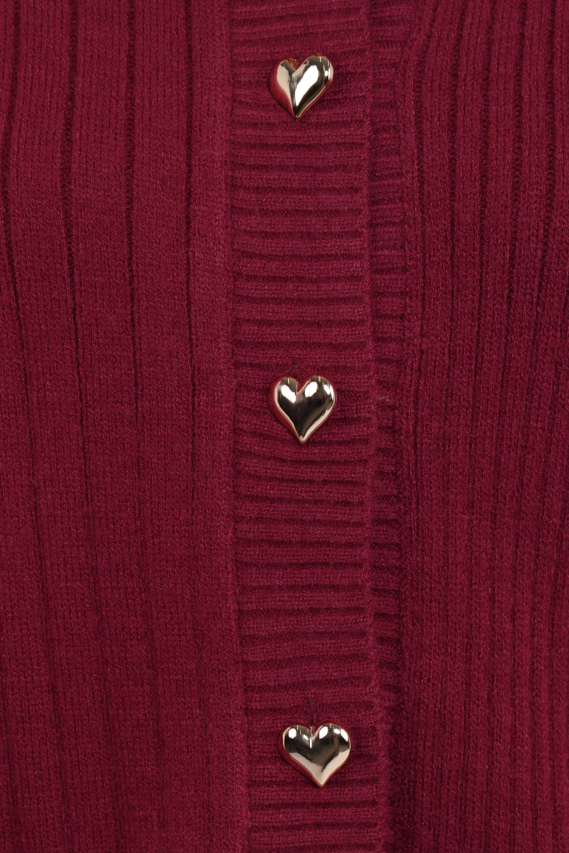 Wrap yourself in cozy charm with the Loulani Heart Button Cardigan in Cherry. Featuring a round neckline and long sleeves, this button-down cardigan is designed with both comfort and versatility in mind.