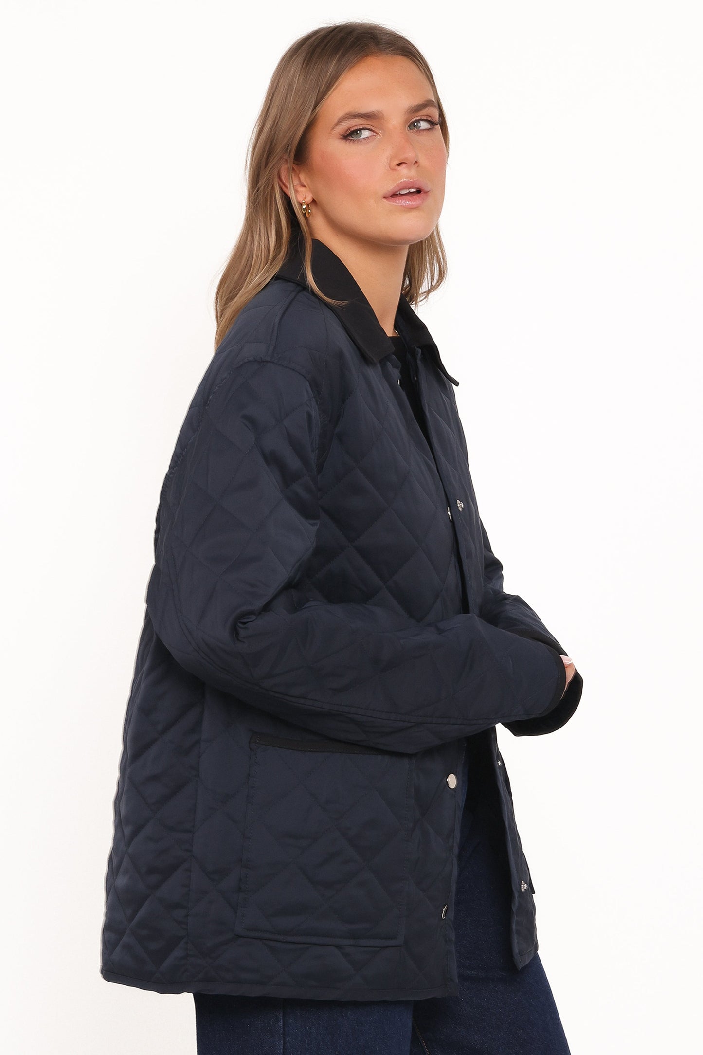 The Lynly Quilted Barn Jacket in Navy brings together functionality and timeless style with a modern twist. Its quilted design not only adds visual texture but also provides cozy warmth for those breezy days.