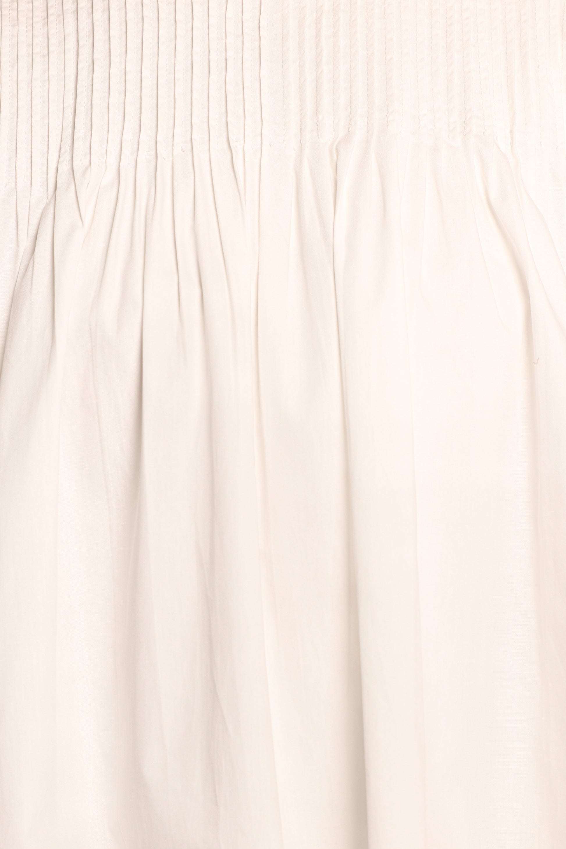 The Melba Blouse in white is your go-to piece for effortless elegance with a contemporary edge. Featuring a round neckline and delicately pin-tucked pleat detailing, it adds subtle texture and sophistication to your look.