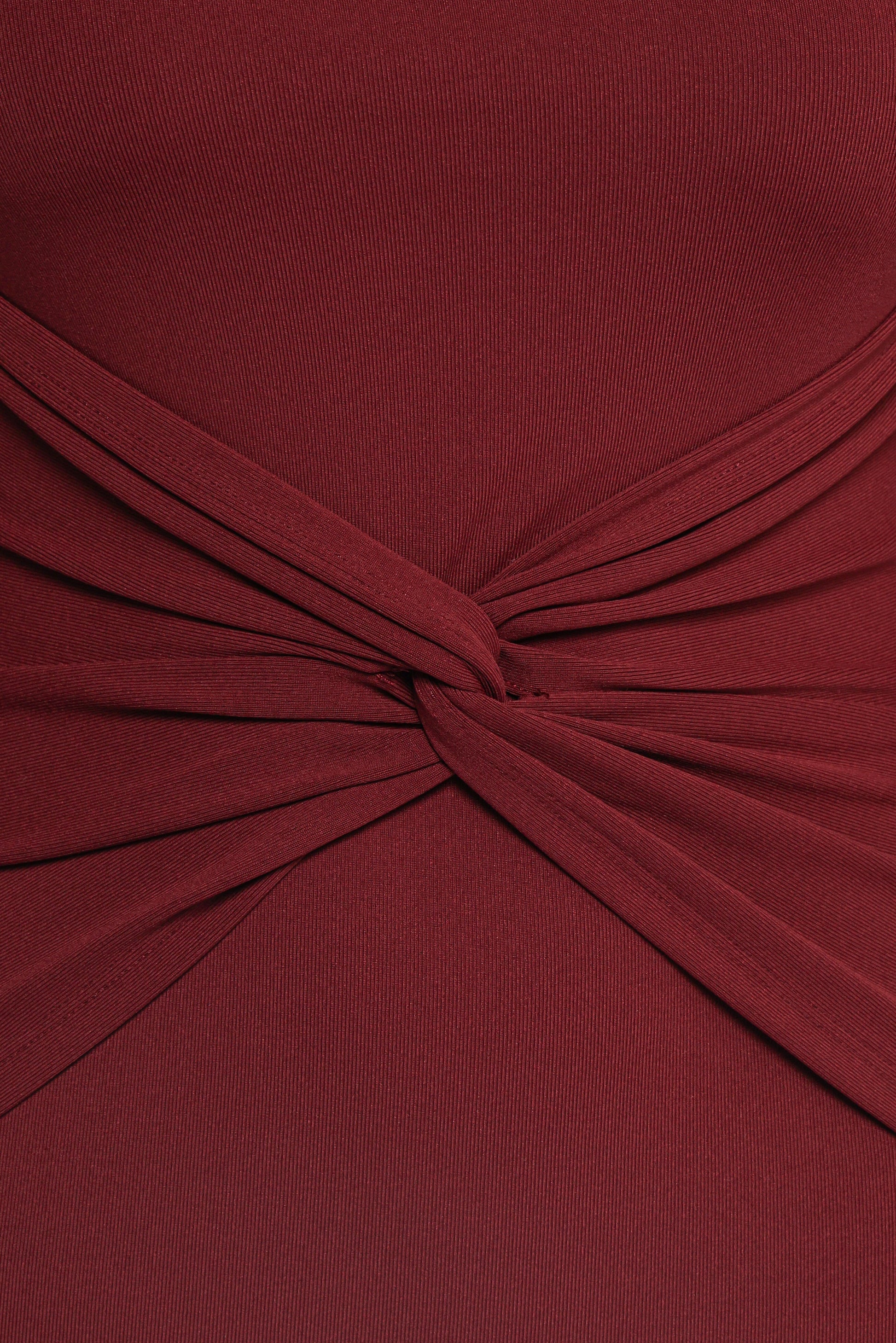 Turn heads and exude confidence in the Nash Long Sleeve Dress in Deep Red. Crafted from a stretch ribbed knit, this ultra-comfortable yet effortlessly chic dress hugs you in all the right places.