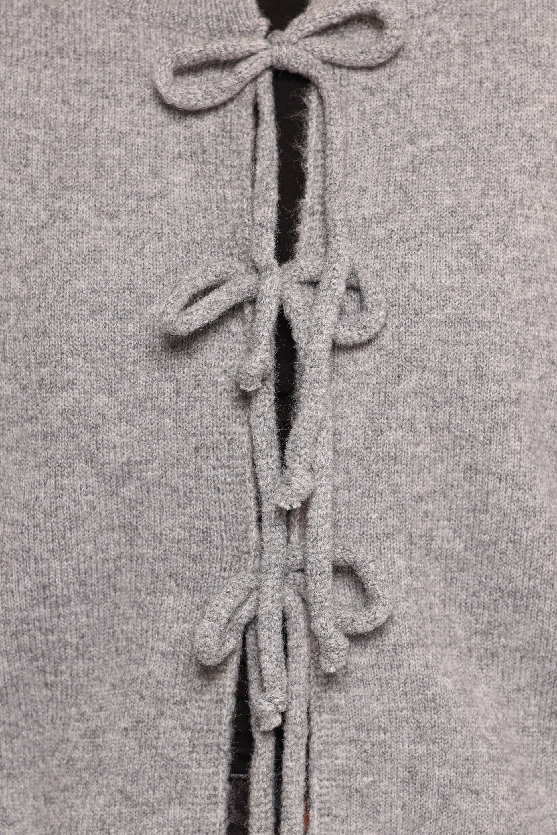 Wrap yourself in effortless style with the Neri Bow Cardigan in Grey. Featuring a chic round neckline and an open-front design, this cardigan lets you layer with ease while adding a playful touch to any outfit with its feminine tie-close detail.