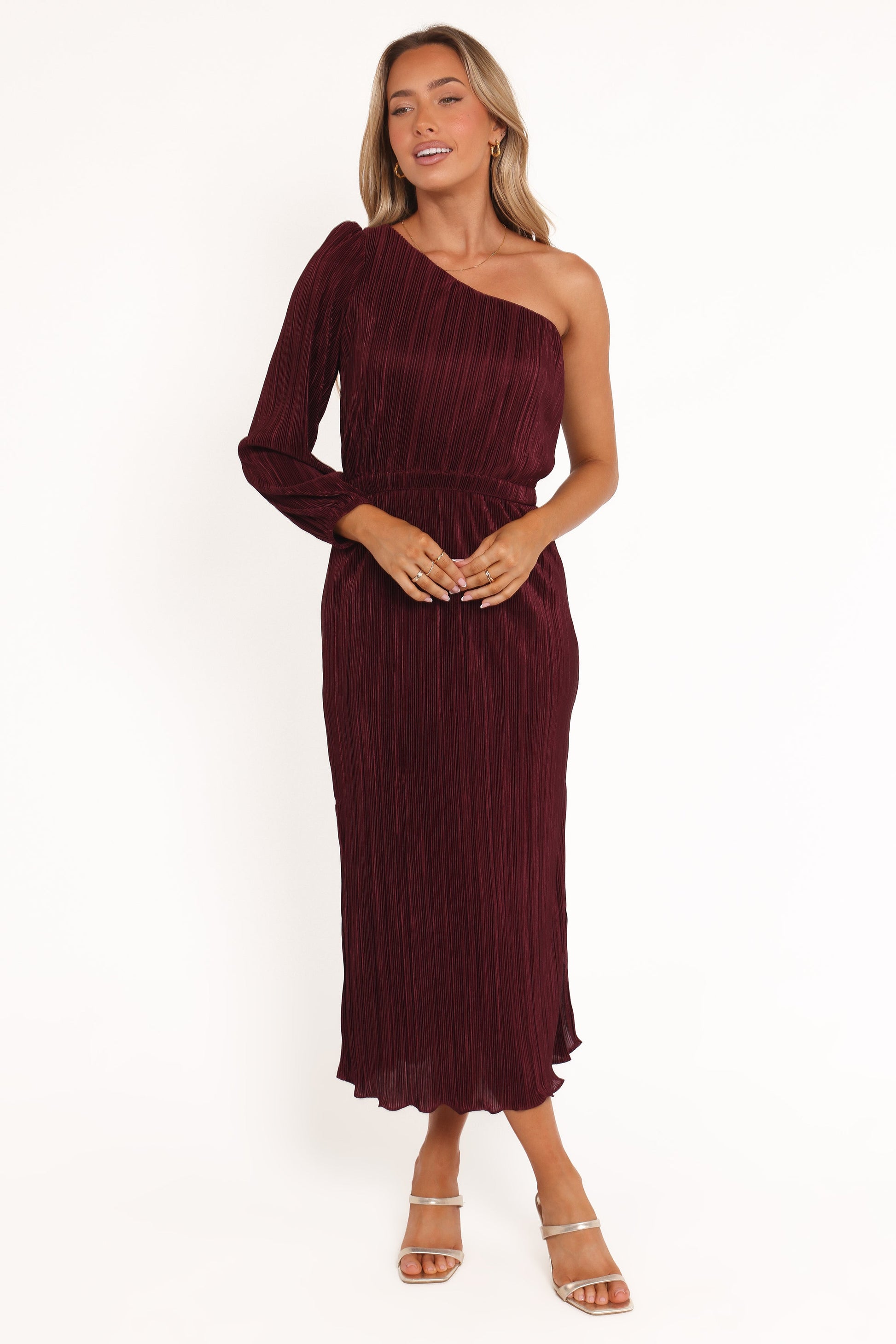 Pontee One Shoulder Pleated Midi Dress - Burgundy