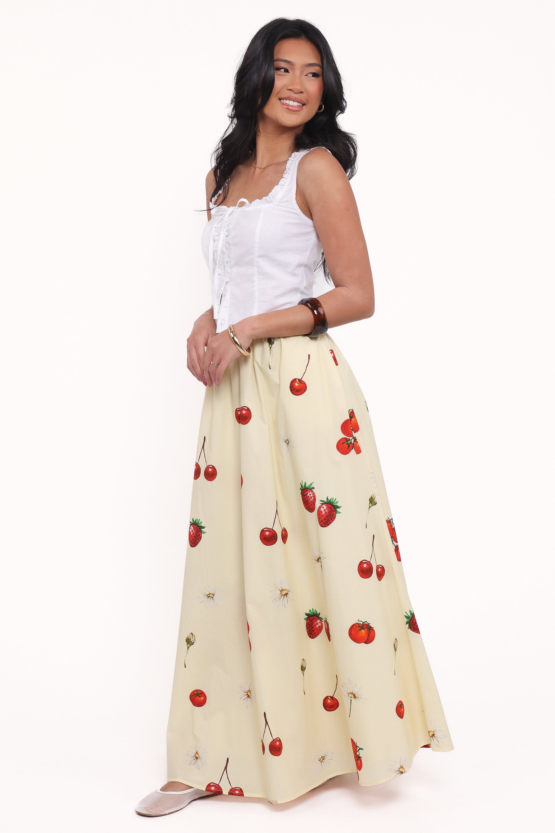 Step into effortless style with the Remira Midi Skirt in Yellow Cherry. Featuring a flattering high-waisted cut and an easy-to-wear elasticised waistband, this skirt blends comfort with chic.