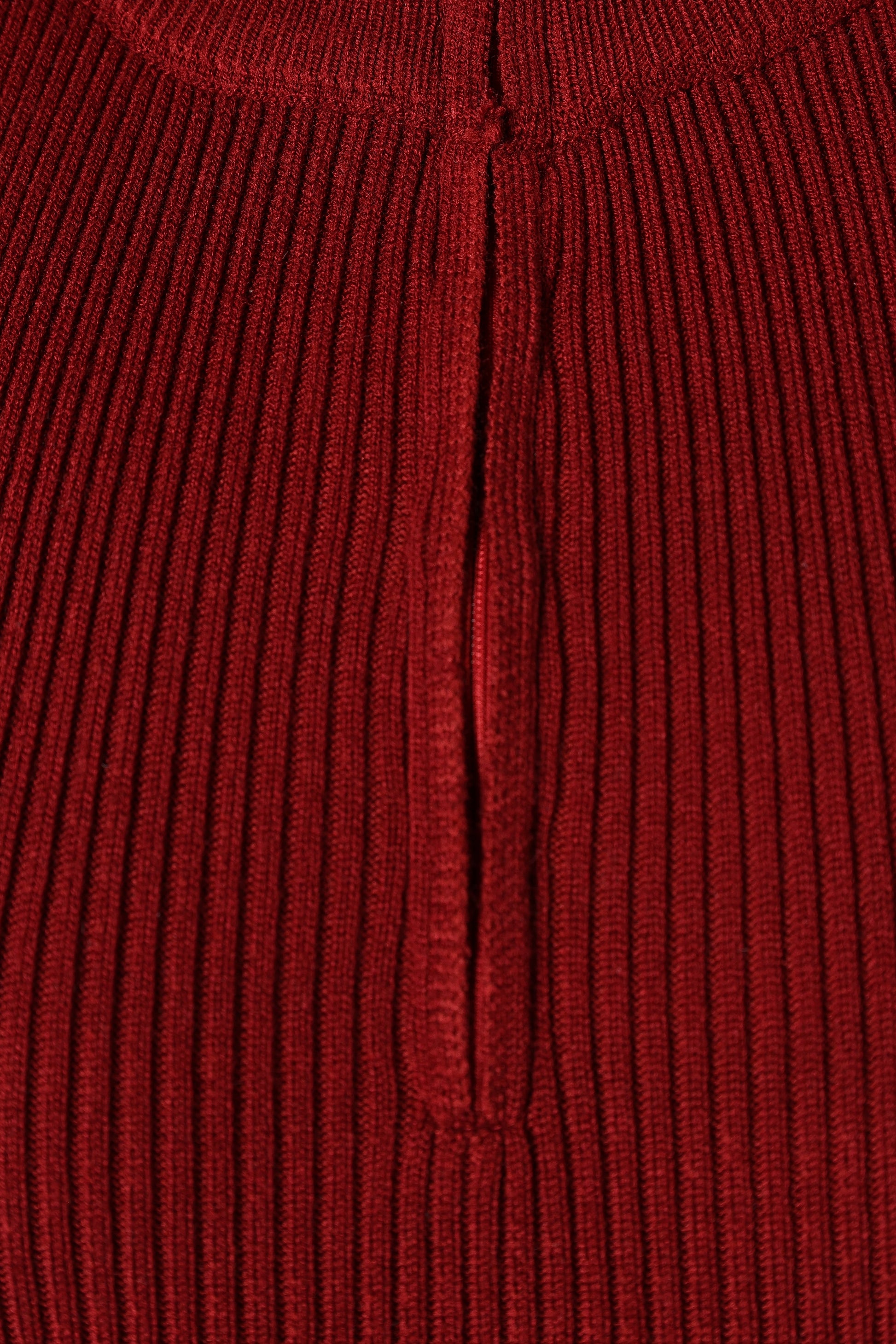 Featuring a chic spread collar with a snazzy zip close and a daring back cut out detail, this sleeveless stunner is designed to flatter your figure with a bodycon fit. Crafted from a stretchy ribbed knit material, this dress promises both comfort and a dash of sass.